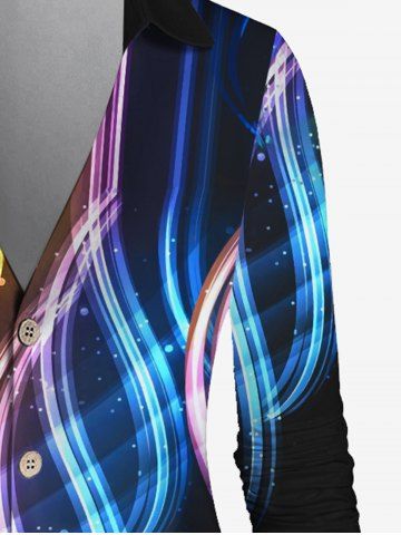 c*****15Plus Size V Neck Light Beam Print Button Up ShirtColor: BLACK Size: 5X | US 30-32very nice blouse fits true to size colors are very vivid