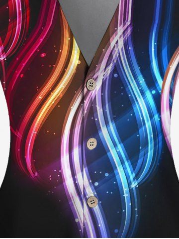 c*****15Plus Size V Neck Light Beam Print Button Up ShirtColor: BLACK Size: 5X | US 30-32very nice blouse fits true to size colors are very vivid