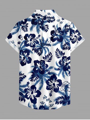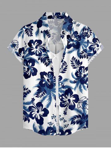 Women's Coconut Tree Hibiscus Flower Print Hawaii Shirt - Blue - L
