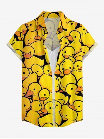 Women's Cute Duck Print Hawaii Shirt - Yellow - Xl