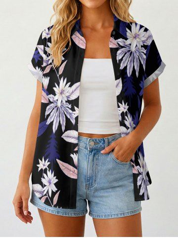 Women's Flower Leaf Print Hawaii Shirt - Concord - Xs
