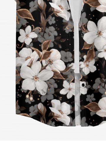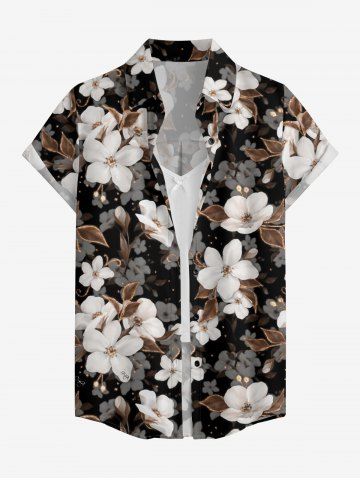 Women's Ombre Flower Leaf Print Hawaii Shirt - Deep Coffee - Xl