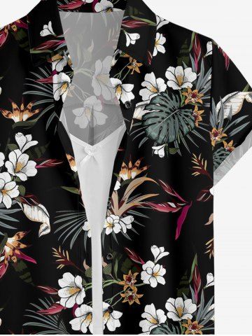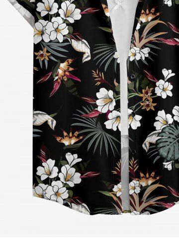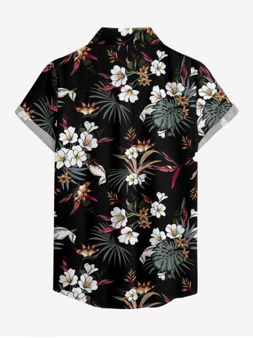 Women's Tropical Leaf Flower Print Hawaii Button Shirt - Black - Xl