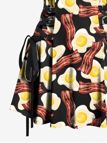 Bacon Fried Egg Print Lace Up Hawaii Tank Dress - Black - Xs