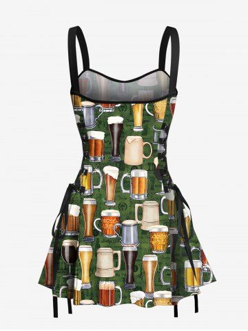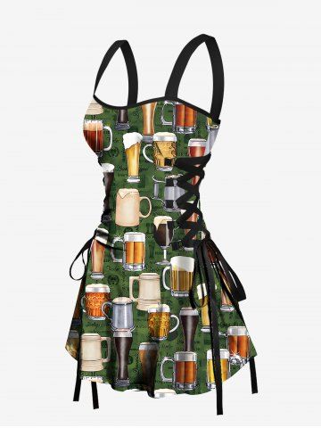 Graphic Dresses > Beer Cups Teapot Glasses Print Lace Up Hawaii Tank Dress