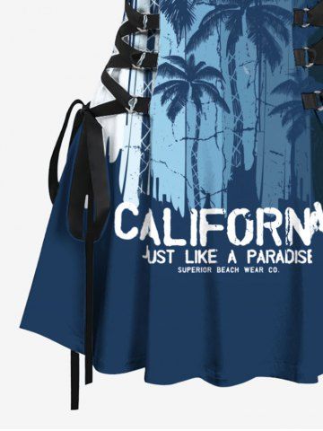 Coconut Tree Ombre Colorblock Print Lace Up Hawaii Tank Dress - Deep Blue - Xs