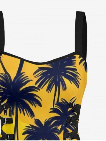 Coconut Tree Print Hawaii Lace Up A Line Dress - Yellow - L
