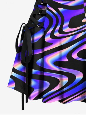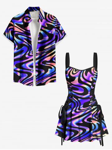 Colorful Ocean Currents Print Lace Up Hawaii Tank Dress - Purple - M