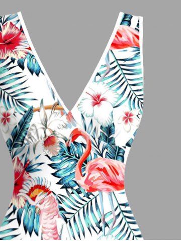 Graphic Dresses > Flamingo Parrot Hibiscus Flowers Leaf Print Hawaii Ruffles Split Surplice Dress
