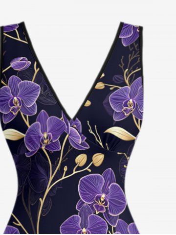 Flower Branch Print Hawaii Ruffles Split Dress - Concord - Xl