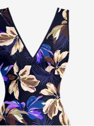 Flower Tropical Leaf Print Hawaii Ruffles Split Dress - Purple - S
