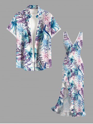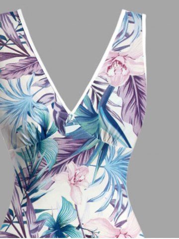 Flowers Tropical Leaf Print Hawaii Ruffles Split Surplice Dress - Light Purple - Xxxl