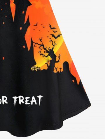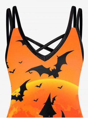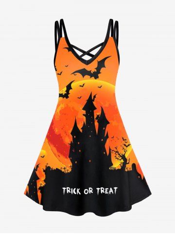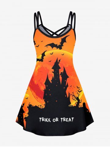 Halloween Bat Moon Castle Print Crisscross A Line Dress - Orange - 3x | Us 22-24