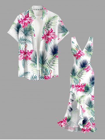 Graphic Dresses > Hibiscus Flowers Tropical Leaf Print Hawaii Ruffles Split Surplice Dress