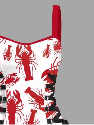 Lobster Print Lace Up Hawaii Tank Dress - White - L