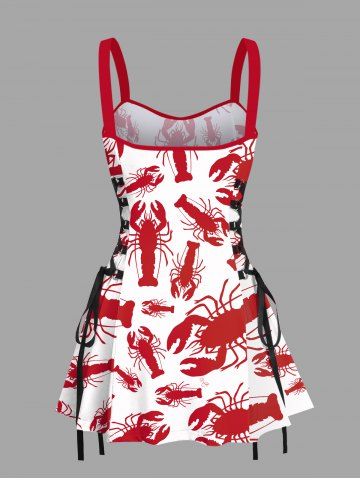 Graphic Dresses > Lobster Print Lace Up Hawaii Tank Dress