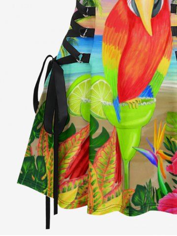 Graphic Dresses > Parrot Coconut Tree Flowers Seascape Print Lace Up Hawaii Tank Dress