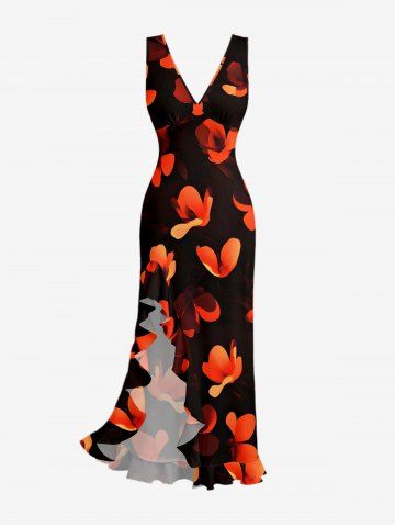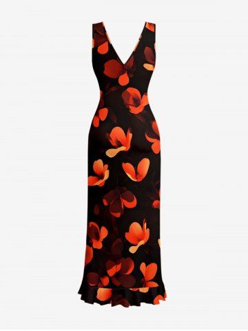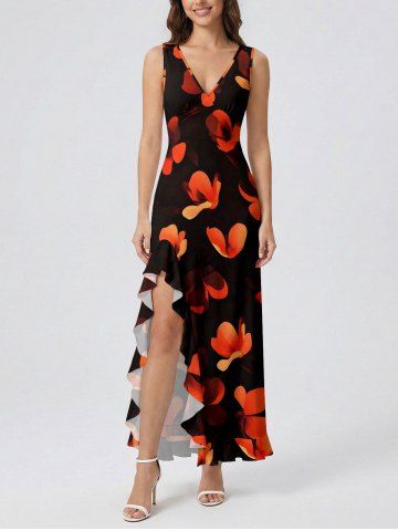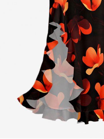 Graphic Dresses > Petal Flower Print Hawaii Ruffles Split Dress