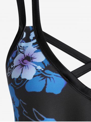Graphic Dresses > Plus Size 3D Butterfly Floral Crisscross A Line Sleeveless Dress