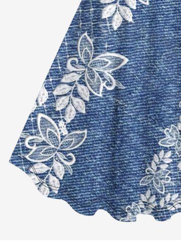 Graphic Dresses > Plus Size 3D Embroidery Butterfly Floral Leaf Denim Print Hawaii A Line Tank Dress