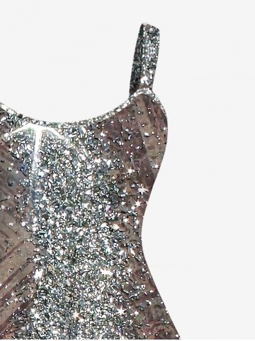 Graphic Dresses > Plus Size 3D Glitter Sparkling Sequins Textured Distressed Newspapaer Print A Line Party Dress