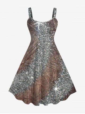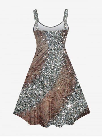 Graphic Dresses > Plus Size 3D Glitter Sparkling Sequins Textured Distressed Newspapaer Print A Line Party Dress