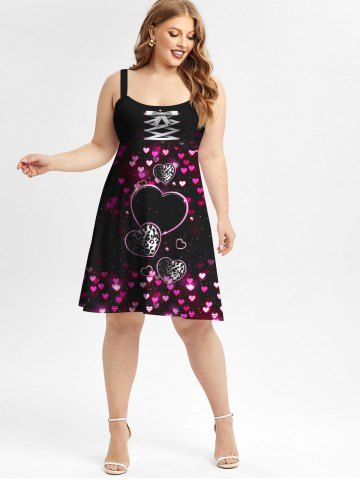 Graphic Dresses > Plus Size 3D Lace Up Heart Print Valentines Day Dress