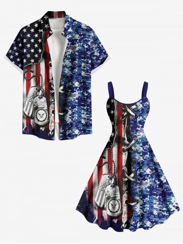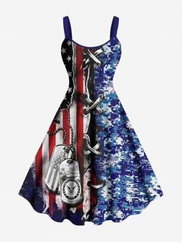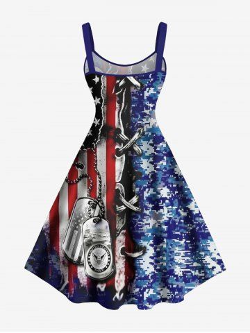 Graphic Dresses > Plus Size 3D Lace Up Patriotic American Flag Camouflage Chain Print A Line Tank Dress