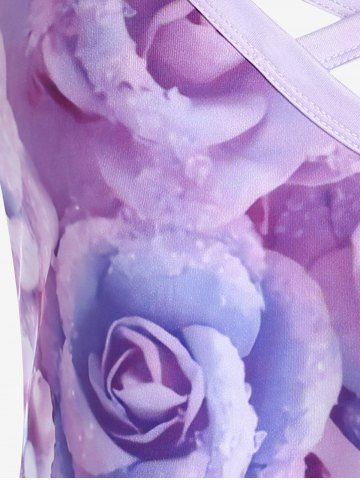 Plus Size 3D Rose Butterfly Printed Criss Cross A Line Sleeveless Dress - Light Purple - 4x | Us 26-28