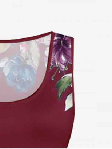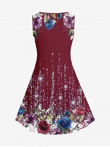 Plus Size 3D Sparkles Flower Printed A Line Tank Dress - Deep Red - 1x | Us 14-16