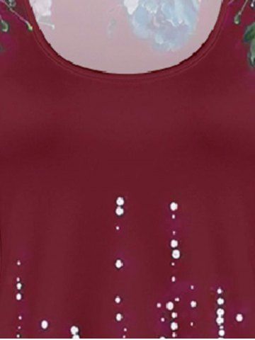 Plus Size 3D Sparkles Flower Printed A Line Tank Dress - Deep Red - 2x | Us 18-20