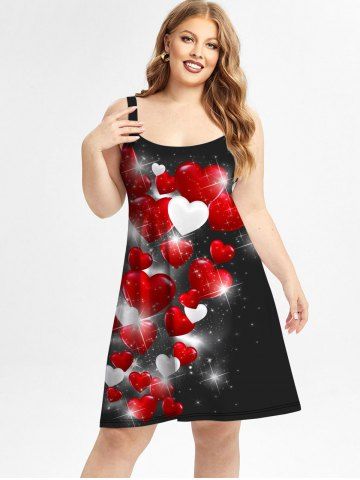 Graphic Dresses > Plus Size 3D Sparkles Heart Printed Backless A Line Valentines Dress