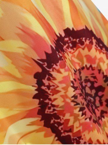 Graphic Dresses > Plus Size 3D Sunflower Printed Crisscross A Line Sleeveless Dress