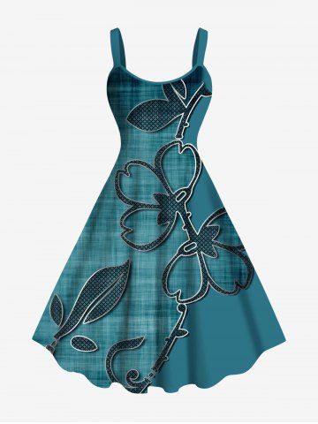 Graphic Dresses > Plus Size 3D Textured Flower Leaf Print Hawaii A Line Tank Dress