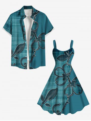 Plus Size 3D Textured Flower Leaf Print Hawaii A Line Tank Dress - Green - Xxs