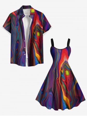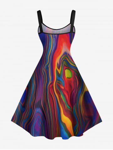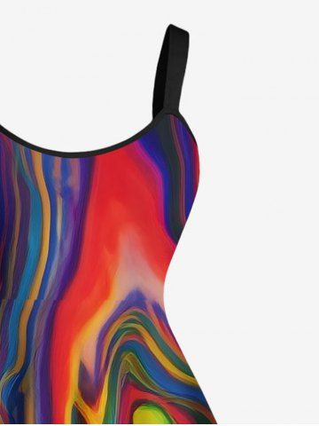 Plus Size Abstract Painting Colorful Beach Print Hawaii Tank Dress - Multi-a - M