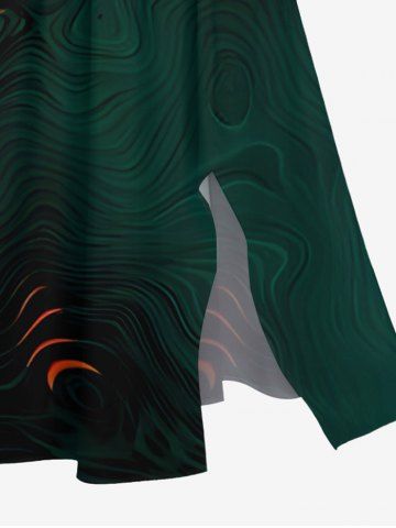 Plus Size Abstract Pattern Colorblock Print Split Hawaii Midi Dress - Dark Orange - L