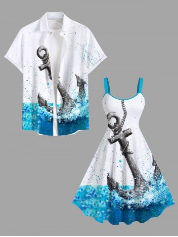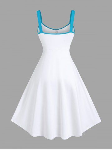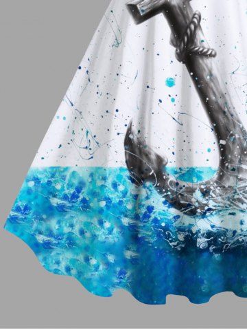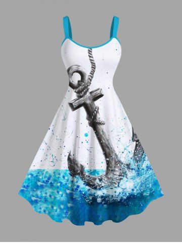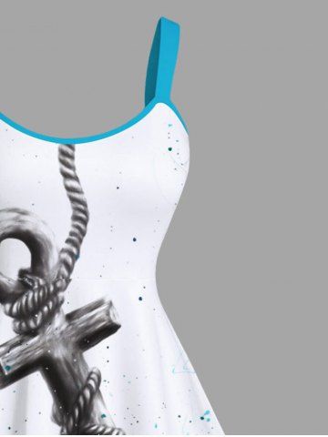 Plus Size Anchor Sea Painting Splatter Print Hawaii A Line Tank Dress - White - 2x
