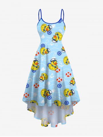 Plus Size Anchor Swimming Ring Cute Duck Print Hawaii Cruise High Low Asymmetric Cami Dress - Light Blue - 2x