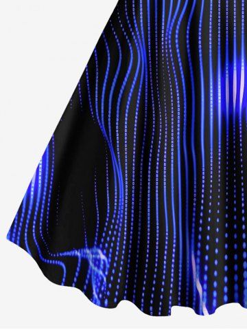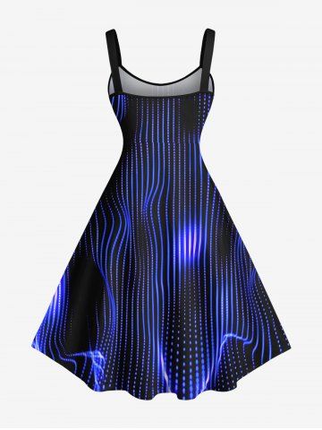 Plus Size Aurora Art Geometric Stripes Neon Print Tank Dress - Blue - S