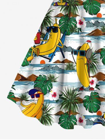 Graphic Dresses > Plus Size Banana Coconut Tree Tropical Leaf Print Hawaii Tank Dress