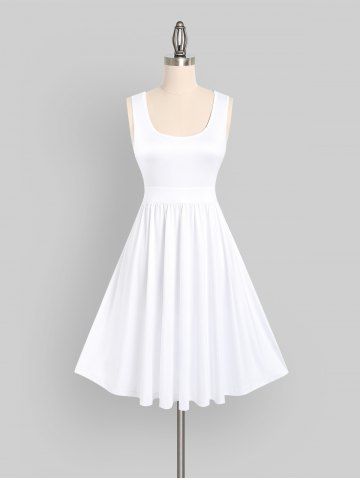 Plus Size Basic Solid Color Knee Length Flare Dress - White - 5x | Us 30-32