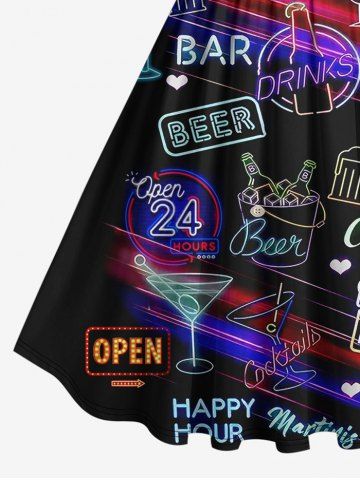 Plus Size Beer Juice Letters Neon Print 1950s Vintage Hawaii Dress - Black - Xs