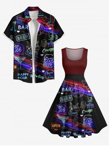 Plus Size Beer Juice Letters Neon Print 1950s Vintage Hawaii Dress - Black - 3x