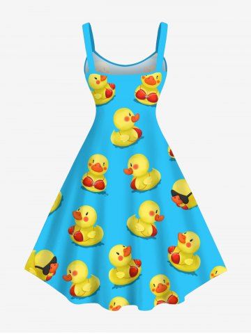 Plus Size Bikini Ducks Print Hawaii Tank Dress - Sky Blue - 5x
