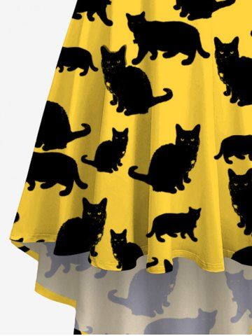 Plus Size Black Cats Print High Low Hawaii Cami Dress - Yellow - 6x