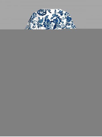 Plus Size Blue And White Porcelain Flowers Leaf Print Split Hawaii Midi Dress - White - L
