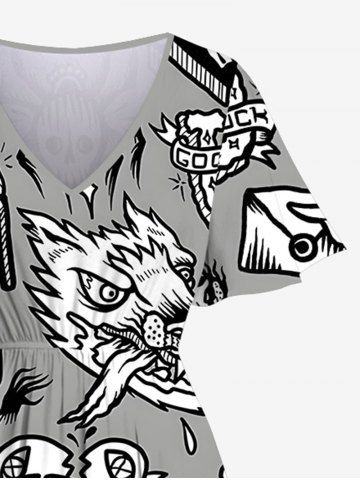 Plus Size Break Heart Skull Cross Print Split Midi Dress - Gray - S