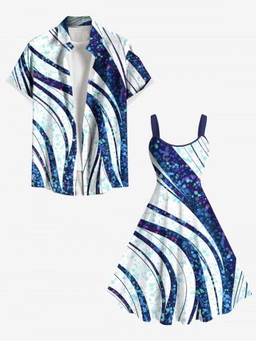 Plus Size Bubble Spotted Curve Colorblock Print Hawaii A Line Tank Dress - Blue - L