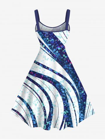 Plus Size Bubble Spotted Curve Colorblock Print Hawaii A Line Tank Dress - Blue - 3x